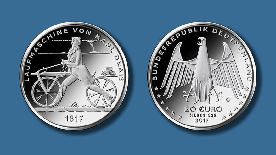 Das Bundesfinanzministerium legt Wert auf die Feststellung, dass es im juristischen Sinne gar keine Falschmünze fabrizieren kann. Demnach ist eine staatliche Münze auch dann echt, wenn sie falsch ist. D.h. im vorliegenden Fall der Gedenkmünze zum 200jährigen Jubiläum der Laufmaschine im Juni 2017, dass Fehldarstellungen offensichtlich hingenommen werden. Leider enthält der Entwurf drei Fehler: